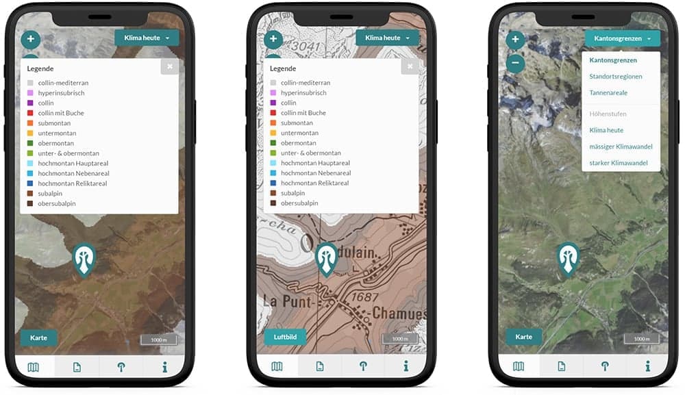 Zu diesem Thema hat geOps für die Eidgenössische Forschungsanstalt für Wald, Schnee und Landschaft WSL eine App für Baumartenempfehlungen entwickelt, die eine Hilfestellung für Entscheidungen bei der Pflanzung und Pflege von Bäumen sein soll.